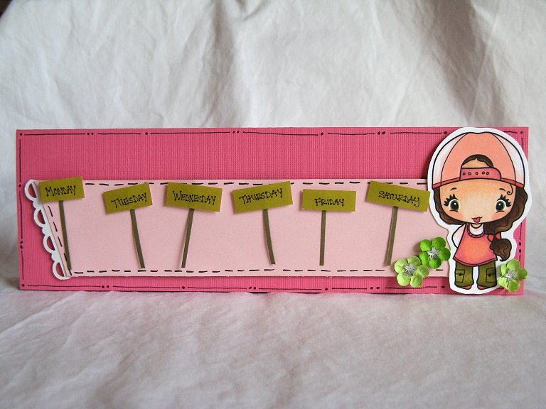 I actually created it to go on the refrigerator and combine it with the Something To Do Garden project from the post before. Each week, the little flower girls will be changed to reflect the new activities for that week.