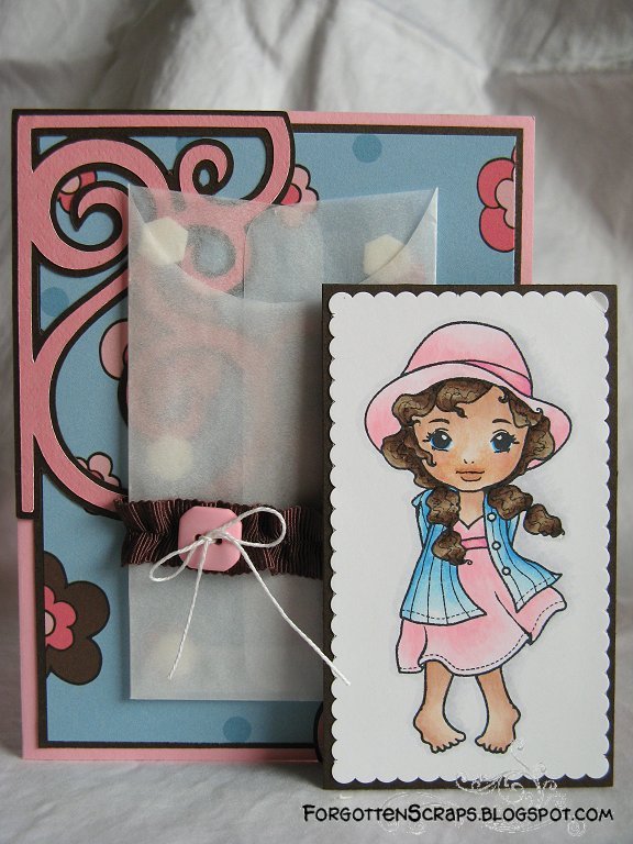 I added a vellum envelope on the front and created a mini bookmark to put in it. The envelope and scalloped edge insert were from Stampin’ Up!