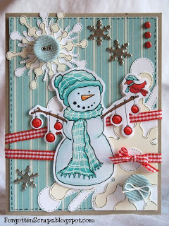 Oh what a darling Christmas card. I just love snowmen!!! Thanks so much for playing at Bee Crafty.Deanne 🙂