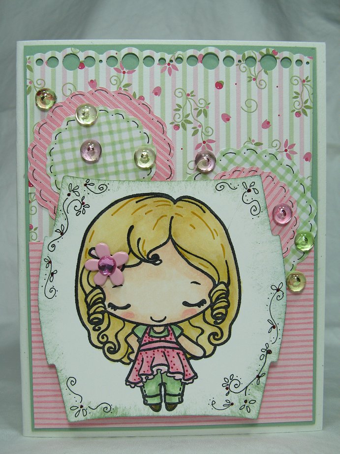 I made this card using Sweet Anya from The Greeting Farm. As you know, this little cutie is a design I help make and it’s still so fun to use her! I still have several possibilities floating around in my head so this isn’t the last of her. ;D