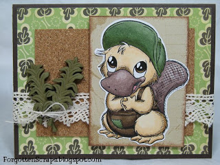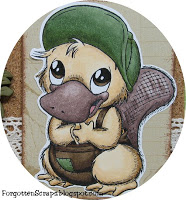 I made this card using Bikkie the Platypus from The Stamping Bazaar designed by Marina Neira. This is the actual size of Bikkie as I used the rubber stamp instead of the digi form.
