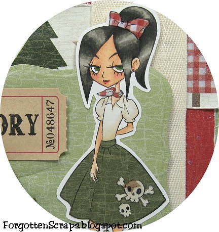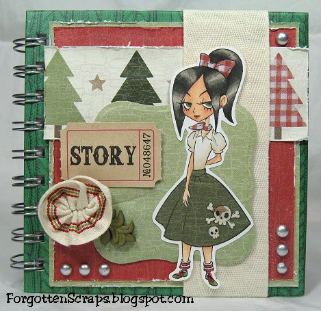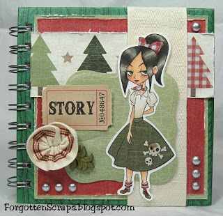 I used paper-piecing on most of it and made sure to glue everything down instead of using tape. Now it really is stuck together and great for using! The other challenge is about the letter G and to create a card or project using these three things: Girl, Green, Glisten. For glisten, I sprayed a shimmering mist over the notebook and also used Crystal Effects on the skulls and shoes!