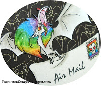 I got the idea of the envelop from a Whiff of Joy stamp called Charlotte Riding on Pigeon plus Sentiments. I drew it to get the right size and changed the postage stamp to be a little more fitting for Lili. 😀 Then stamped it with one of the sentiments included in that set.