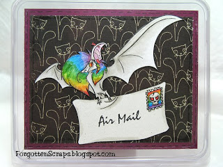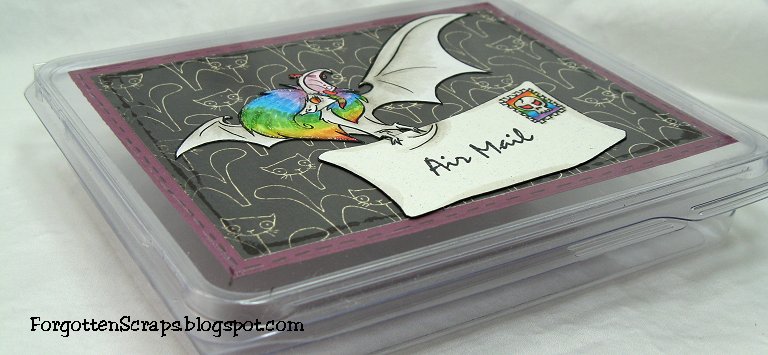 I decorated the top of this storage box using Lili from Simply Betty Stamps. The box is the perfect size to fix standard size cards to protect them when in transit. The challenge is anything but a card with a Halloween theme… bats, black cats, and skulls… check! However, I used a rainbow color scheme because it’s my daughter’s “favorite color!”