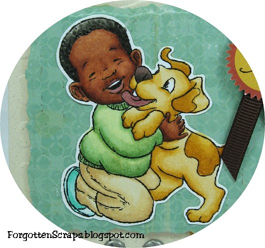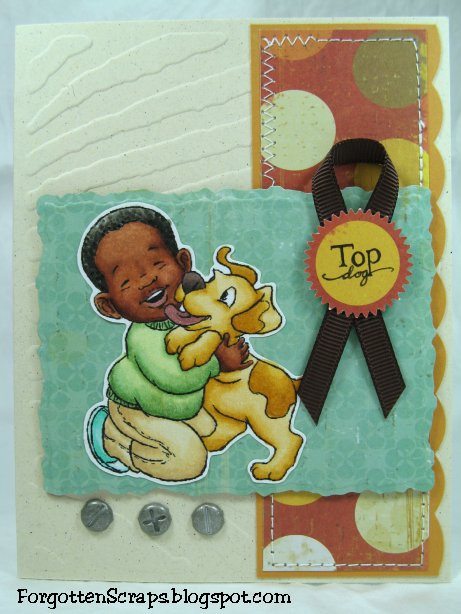 I made this card using Boy with Puppy from Elizabeth O. Dulemba‘s Coloring Tuesdays. This is another card my Mom & I made together and we both chose the same Mojo Monday sketch!