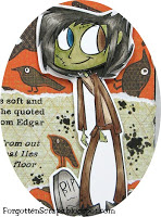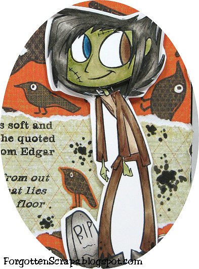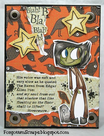I made this card using Millerstein from Simply Betty Stamps for the 12 Days of Halloween Challenge! This time, the challenge is to create a card or project using crows as incorporate the quote given. I thought it would be fun to give Millerstein two different color eyes.