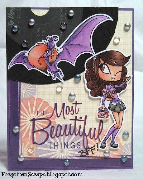 I made this card using London Back to School and My Pets BB from Simply Betty Stamps. Purple is not my favorite color to work with but I like it here next to the black record paper. I love these school stamps!