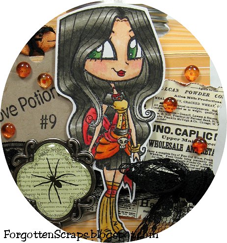 I made this button jar using Betty from Simply Betty Stamps. This is for the 9th Day of Halloween challenge which is is to create a project and label it Love Potion #9. These corduroy buttons are my current love and I ended up buying two of every color! They feel so soft and add great texture. ;D