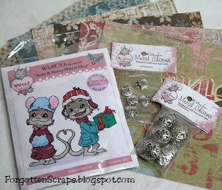 Who wants some unclaimed blog candy!?!? Thanks to Katharina from Whiff of Joy, she sent over this adorable Betty & Henry Christmas Mouse stamp along with some wonderful embellishments, including metal beads and Hello Kitty charms! I’ve also added a small sampling of Signature Christmas paper from My Minds Eye.