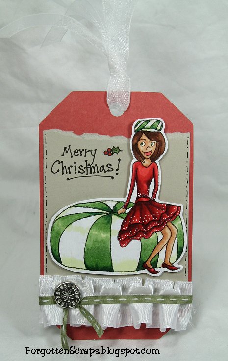 The challenge this week at Lollipop Crafts is to make gift tags and what better time to do it. This is one that I made using Peppermint Patti from Fairy Knoll for a Christmas gift. I removed her fairy wings and colored her up in the traditional reds and greens of the season.