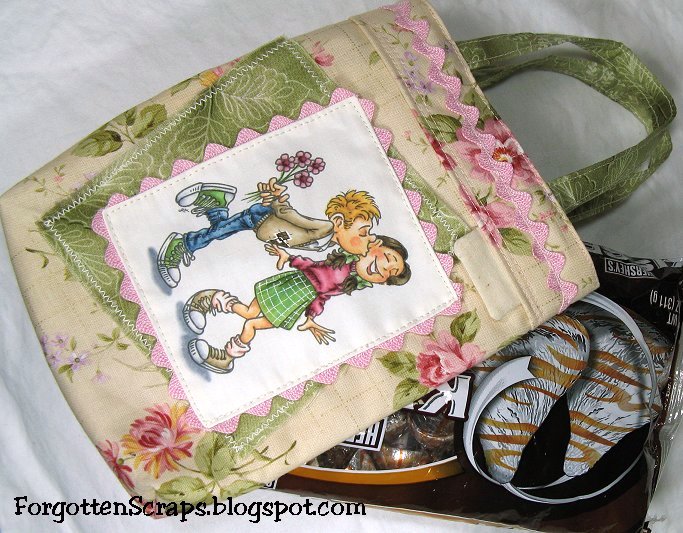 The size of the handbag is small but I’ve found several items that conveniently fit in it! It was intended as a Valentines gift so a a regular size bag of Hershey’s Chocolate Kisses fit nicely. However, I’ve also discovered that a travel size baby wipe container plus one or two diapers will also fit – great for church or a short babysitting trip. And lastly, my youngest daughter demonstrated that her baby doll fits perfectly and is completely content to stay there! LOL!