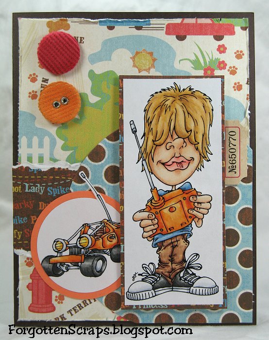 I made this card using Racing Rick from Make it Crafty and went with a bright boy themed card. However, I added lots of brown to tone down the colors so I could use it with an older age bracket. I remember spending countless hours playing with my brothers and the RC cars – lots of good memories.