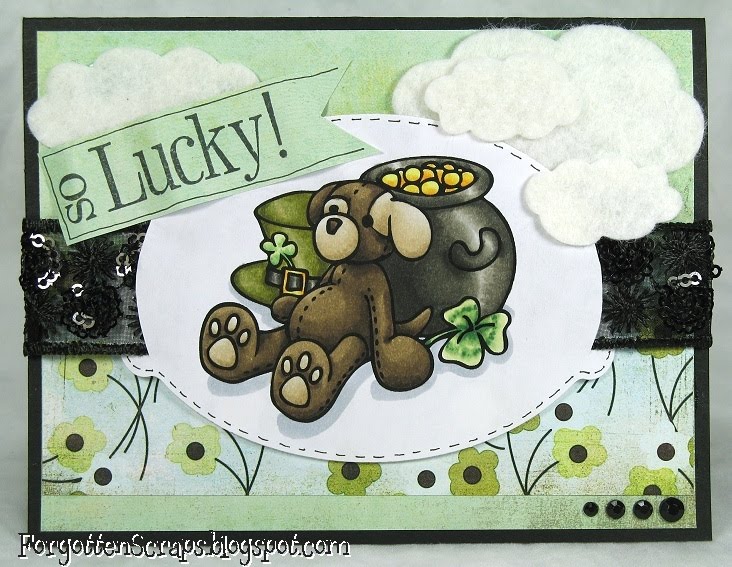 Happy St. Patrick’s Day! It’s a busy day for posts so scroll on down and catch all the inspiration. ;D I made this card using Lucky Dog for the Little Miss Muffet Challenge and in honor of today being “green day” too.