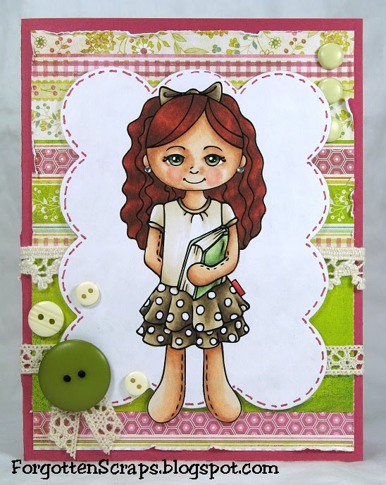 Meet this smart girlie-girl who loves to read – her name is Cinnamon and one of the newest stamps available at Little Miss Muffet Stamps! This little doll was inspired by two munchkins running around my feet… one loves to read and the other loves dresses! Check her out then head on over to the Little Miss Muffet Challenges blog for more inspiring projects. ;D