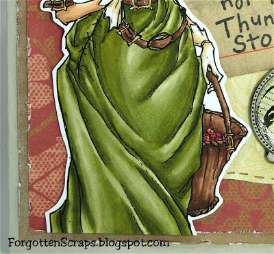 On this card I wanted to try out coloring large areas of fabric so I printed out this Simply Betty Stamps image extra large and went to town! It was perfect, she has a long skirt with plenty of folds to work with. I also took this opporunity to use some freebies that were generously sent my way. ;D