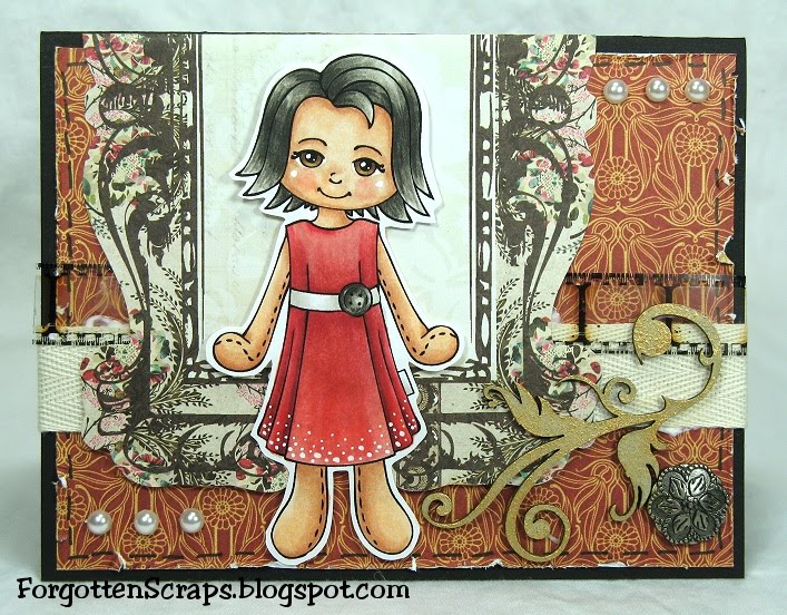 Some other embellishments I added were pearls, film strip, chipboard embellishment and a button brad. I colored the dress with the R20s colors but then darkened it up with T0 and T2 so it wasn’t so bright. Then I added white details at the bottom of the dress.