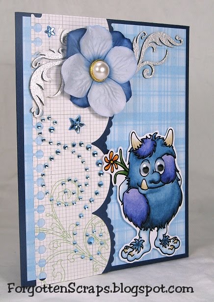 I like your card! Monster looks great in blue!With best wishes,Viktoria