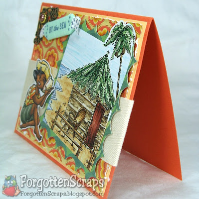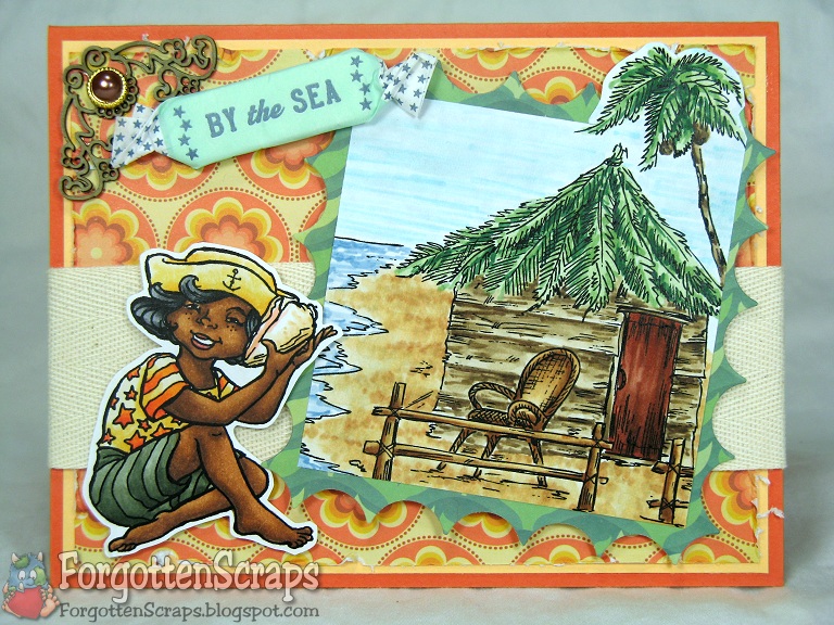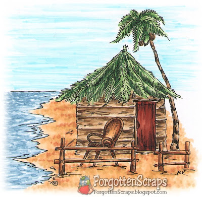 Here’s the Beach Hut by Sea background before it was trimmed down. I tried a different technique on my sand using some tips I got from Elaine but clearly I need some more practice! She colored the most perfect sand texture on her card that I was trying to duplicate.