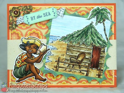 No clouds in sight but at least there is the ocean with a some cool-tone colors for a refreshing feel. The faux candy was an embellishment I had forgotten about which turnedto be a fun addition for this card. Afterall, what girl wouldn’t like a bit of Salt Water Taffy to chew on?! Yum!