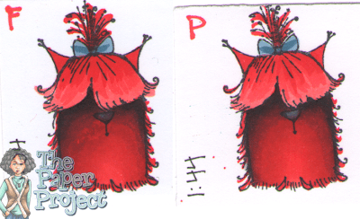 There were a few papers that started to show impurities in the paper fibers (inconsistencies) or possibly areas that had absorbed finger oils. This would show up as little patches or dots that wouldn’t change color. Somehow those little areas are different from the rest of the paper and may or may not show up on another test. These were found on F, H, J, K, L, P and U. Below you can see a close up of F, which shows one of these large patches near the left side of the nose; and P where the impurities in the paper show up as speckled dots throughout the sample.