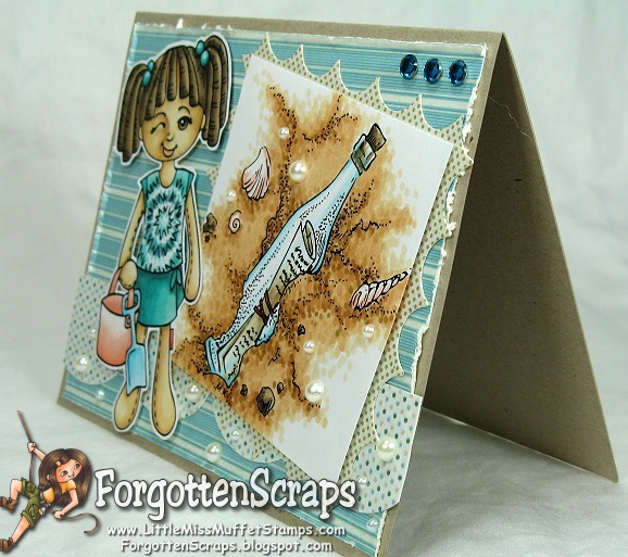 The two images are Coriander, which was released today at Little Miss Muffet Stamps, and the background is Message in Bottle from Make it Crafty. I combined these images because I thought it was a fun story they told together – after all, wouldn’t a message in a bottle be quite the find!