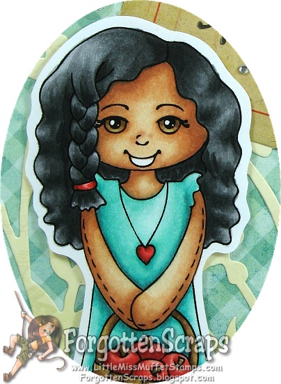 This little cutie is one of the new releases at Little Miss Muffet Stamps and you can check them all out over at the challenge blog. After coloring up a Red Riding Hood I was inspired todraw a girl with red apples – only now do I see that it could be a reference to Snow White. LOL