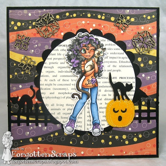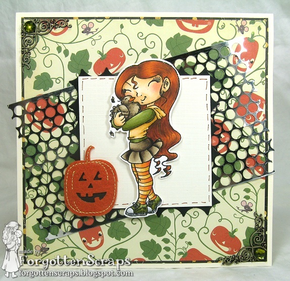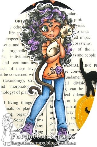 The main image is Oscar Pile of Leaves from Simply Betty Stamps and I used chippies from Fancy Ribbon Slider and Filigree Borders from Make it Crafty (covered with silver acrylic paint). I had fun coloring this image and ended up coloring from edge to edge! This is the last one and will be entered into the Ninth Day of Halloween challenge. Hope you liked them and got some ideas to inspire you with. ;D