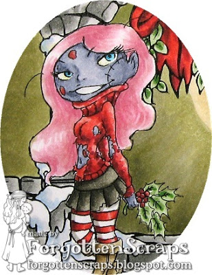 The small bottle of potion is an accessory stamp from Kraftin’ Kimmie. If you’re curious, the background was colored with YG91, 92, 93, 95, N2 and N3. Then the moon was colored with E50, E51 and E53. This was a fun zombie to color and she can even be made into a cute Christmas sweetie too. Of course, the other half of the project will be shown in a couple of days. ;D