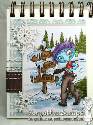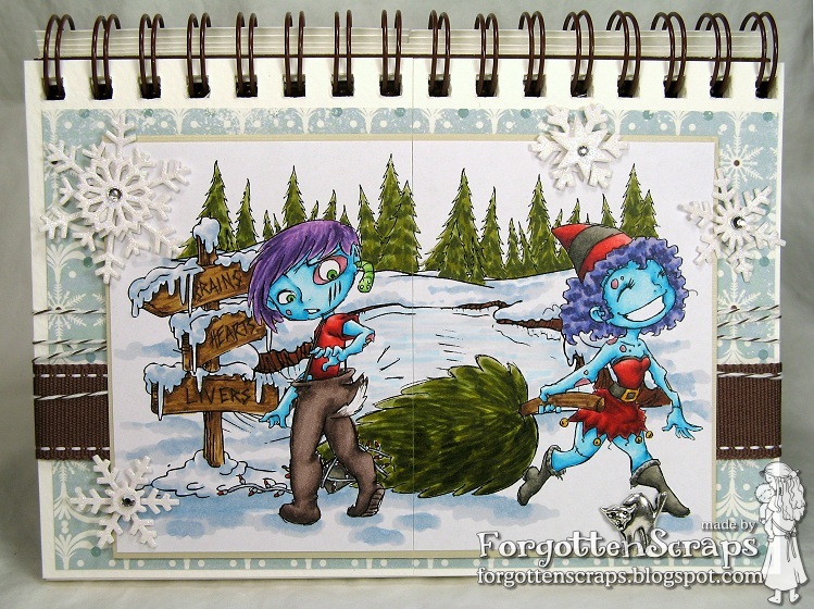 Your waiting has paid off and today I’m showing off the other half of my last journal page for the Sketchy Zombie release! Make sure you check out all the other inspiration from the DT over at the Simply Betty Stamps Challenge blog. Today we’re showing off Fluffy Reindeer Tail Levi and his cute little worm crawling living in his head. LOL
