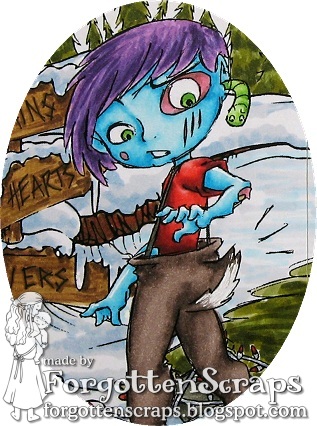 The background is from Make it Crafty and come from two combination packages… Winter Scene Elements and the sign is from Winter Elements. On a side note… doesn’t that sign have a technical term for it? You know… the “where is everything” kind of sign? I’m sure it does but I haven’t a clue! Santa is looking out for these buddies as it’s customized just for them… Brains, Hearts and Livers! LOL (An idea from the SBS DT. :D)