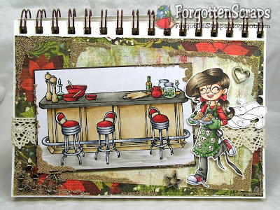For the journal page, I used Little Miss Muffin Rio from Simply Betty Stamps and Kitchen Isle from Make it Crafty’s Kitchen Set to create this scene. I also took some more inspriation from Annika and went to town with the micro beads! LOL I think she does it better but I’ll get the hang of it with a little more practice. (I found all the Martha Stewert colors on clearance for just over a $1.00 so I’ll have plenty of opportunities!)