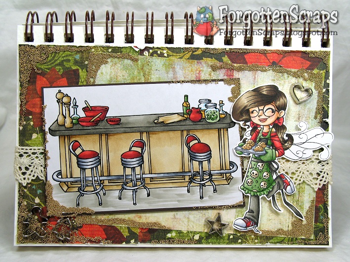 For the journal page, I used Little Miss Muffin Rio from Simply Betty Stamps and Kitchen Isle from Make it Crafty’s Kitchen Set to create this scene. I also took some more inspriation from Annika and went to town with the micro beads! LOL I think she does it better but I’ll get the hang of it with a little more practice. (I found all the Martha Stewert colors on clearance for just over a $1.00 so I’ll have plenty of opportunities!)