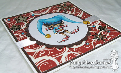 This is Socks… isn’t he cute!! 😀 It’s another one of the Make it Crafty elves that I colored long ago and finally got on a card. This fun set of elf cards are going to be saved and sent out next year. I even had a few holiday cards left over from this year so I’m almost set for the next season. ;D