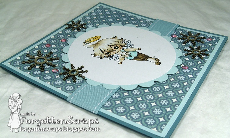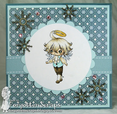 Here’s the counter part to the Sweet Angel I posted yesterday… this is Sweet Cherub from Make it Crafty, plus some of their snowflake chippies. These two angels look great together as well and look like their holding hands. Just darling. ;D