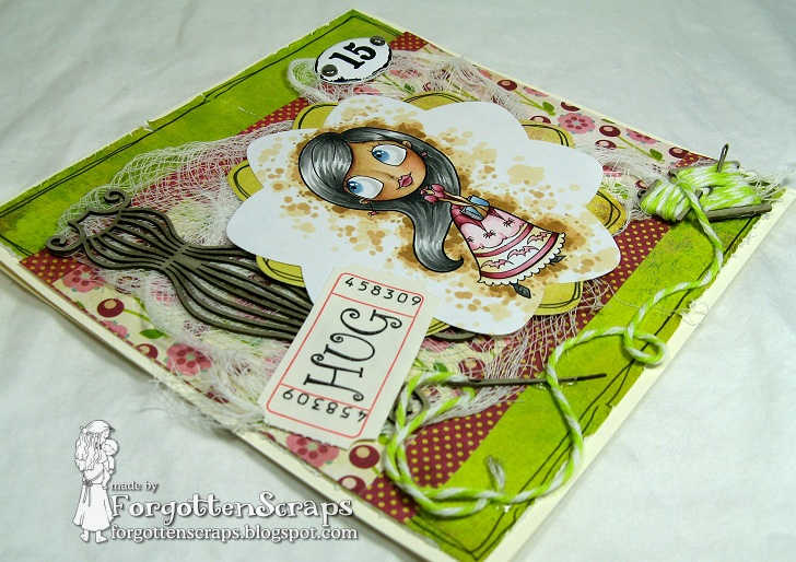 This sweet image is Rio Burton Chibi and she is the newest character on the block at Simply B Stamps. She’s my favorite from this release and didn’t even need any “work” to make her adorable! The HUG ticket is something I ordered from Oriental Trading Company and seemed to be perfect on this project. I’m sure my daughter won’t miss one. LOL