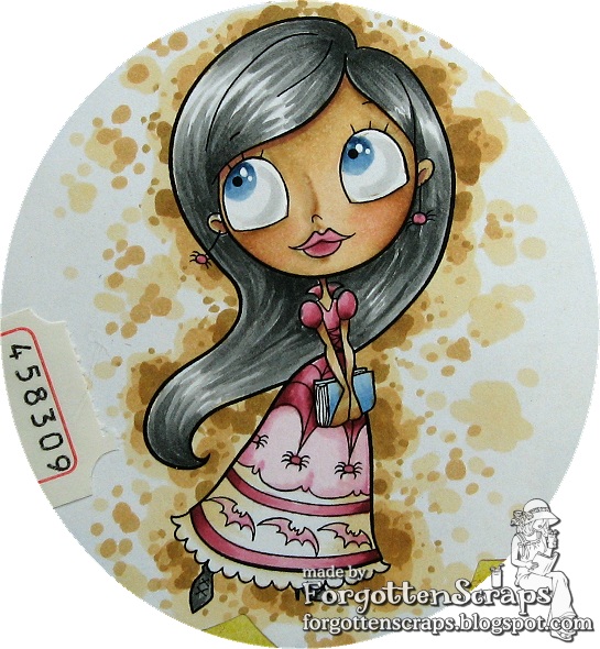 This image is adorable, and you've colored it beautifully! Your dotted background is cool since is kinda blotty (in a good way)! The eyes look neat with the gray.