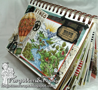 For my project I used Hot Air Balloon and Valley Above from Make it Crafty plus a few chippies from the N1 Fancy Collection. The chippies coordinate well with the new Whimsy sentiments so I took advantage of that and stamped one from Stylized Notables 1. The rest of the journal page was put together with odds and ends found around my crafting space.