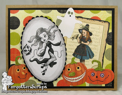 The image I’m starting off with is Haunting Hannah and Hoot. I made cards out of each of them using the same elements and layout then combined them for a gift set. Basically everything I used are left over scraps from Halloween two years ago and it felt good to use it up. This ensemble was part of the 19 cards I made over the weekend. ;D