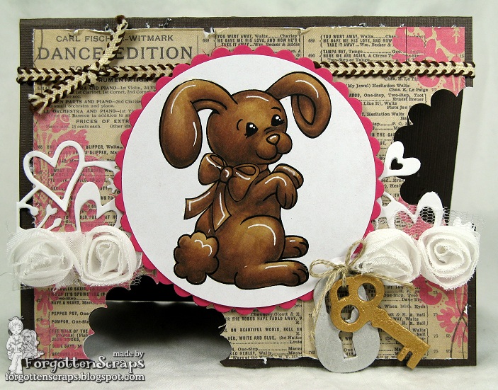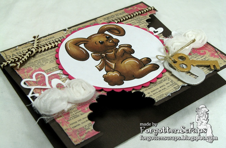 Fantastic chocolate bunny! I love the ribbon and rolled flowers! You should link up at Card Crafter's Circle, it's all about chocolate bunnies this week.
