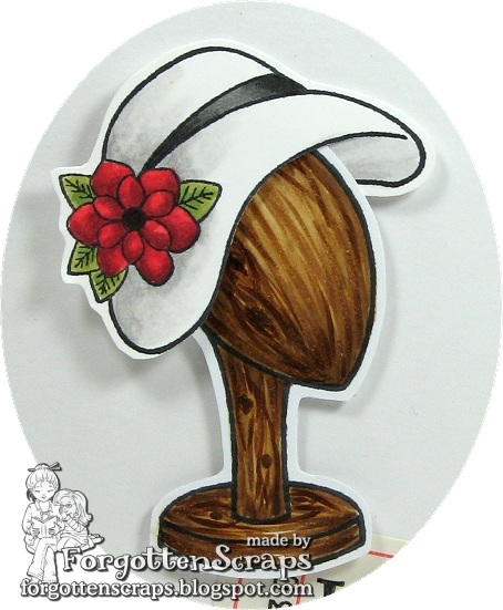 I colored the hat stand to look like wood and used E55, E57 and E59 but it took me two times to figure it out. Finally it worked if I started with the lightest color and gradually built up the darker colors with the blending and wood marks. Also, it helps to keep away from the eye are on the “face” when coloring the wood knots unless you’re going for an added face look. I’ve seen some wood hat stands with a shaped face that would look awesome on this too!