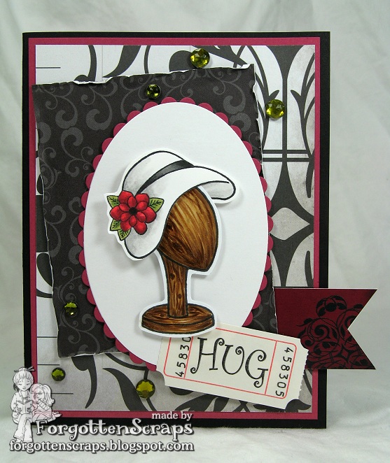 This project uses an image from the Hatter Hat Stands and a rubber one from the Hatter Hats Combo B available from Little Miss Muffet Stamps. You’ll also recognize the hat as the one from Elisabeth Louise Hatter which I thought looked very Easter-y.