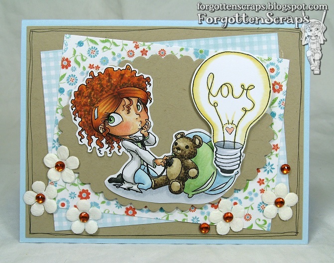Today we’re showing off Doctor Brittany and I always love her curly hair style! She often looks like a red head to me so I reached for my favorite red-head color combination: E59, E09, E08 and YR14. Isn’t she darling as a doctor?! 😀 My project also uses Electric Love from Some Odd Girl.