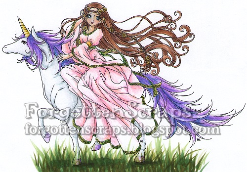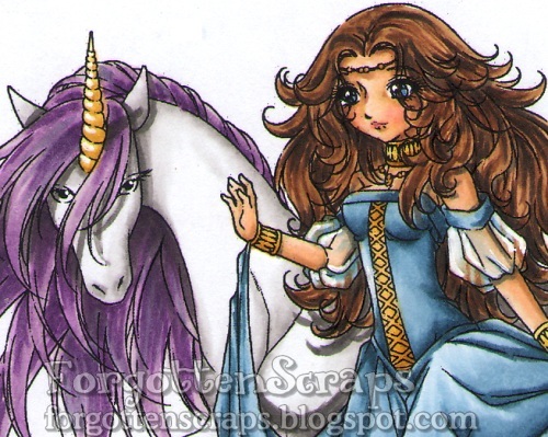 It’s my day to post on the Make it Crafty blog and I’m sharing a few scans of the latest MiC images I’ve colored. I merged Enchanted Princess with Enchanted Unicorn and Exquisite Princess with Exquisite Unicorn. The first one I’ve colored with Prismacolor colored pencils (except the grass on that one) and the second one I colored with Copic markers.