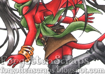 Who knows, maybe this will be Hellboy’s new girlfriend!! he he he. I wish I had the colors of reds I used but it was probably a combination of R20s with a bit if R40s or R50s to help. It turned out much brighter butHellboy would be pleased. 😀 Since her skin was so red, I chose greens and browns to tone them down a little and hopefully give her a more earthly tone rather than a Valentines theme. The black was a goodneutral to help as well and I used two different tones for her hair and her boots.