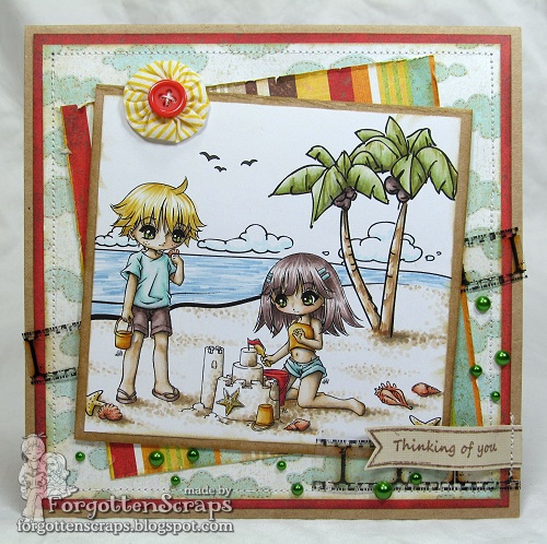 It’s a new challenge at Make it Crafty and this week’s (or I guess 2-weeks’) theme is “Sunshine, Beach and BBQ” with an optional color challenge of “Water.” It’s perfect for those who are in the southern hemisphere and also for those of us up north who are wishing for some warmer weather! I didn’t take the water challenge but my scene screams “Sunshine and Beach!!” Make sure you visit the MiC Blog this week and see everyone’s projects. 😀