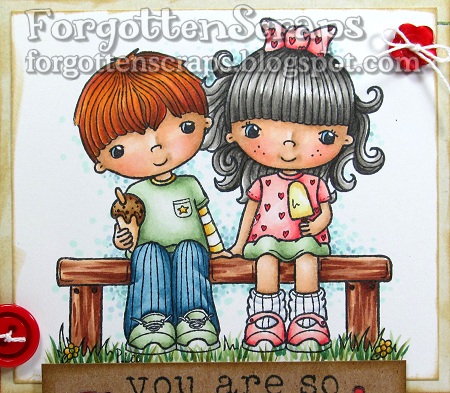 It’s challenge time!! Little Miss Muffet Stamps is starting the next challenge and we want to see your luvy-duvy projects for this fortnight is all about “Hearts and Flowers!” Of course, I could resit using one of the newest rubber stamp images from LMM and this was the perfect theme to get these cute sweethearts out together. ;D