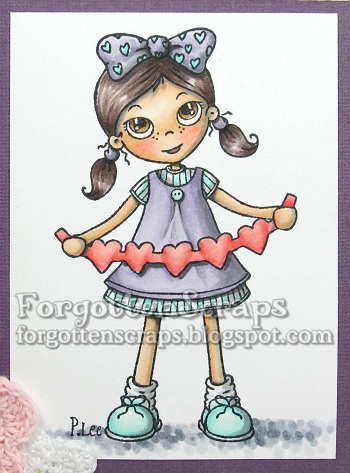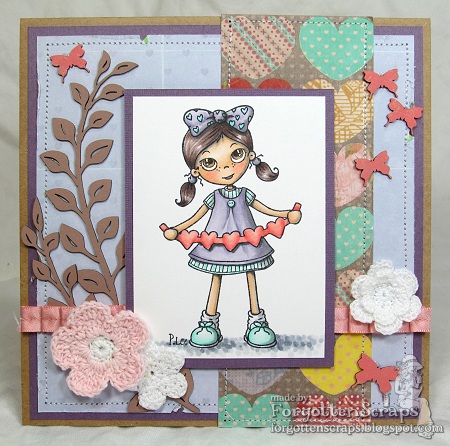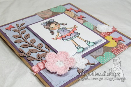 She is so adorable with those little freckles! Your shading is amazing, love the chipboard and crocheted flowers and I think you did a \”mahvalous\” job with purple!