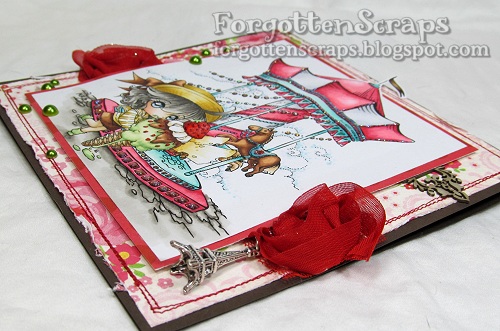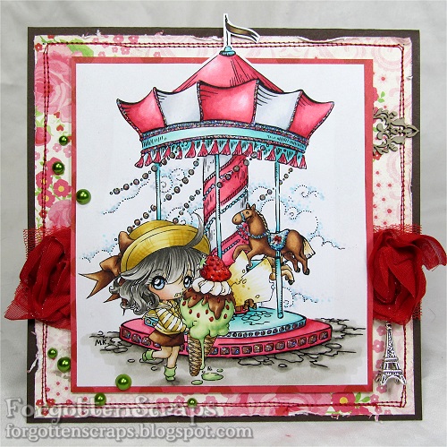 3. Dibbs!!! Hehehe!!! Seriously though I just love your card. The scene is fantastic and as always coloured to pure perfection but what I love most is all the colours, the red stitching, green pearls that amazing beautiful red lace and the colours in the image. Hugs from Bron xx