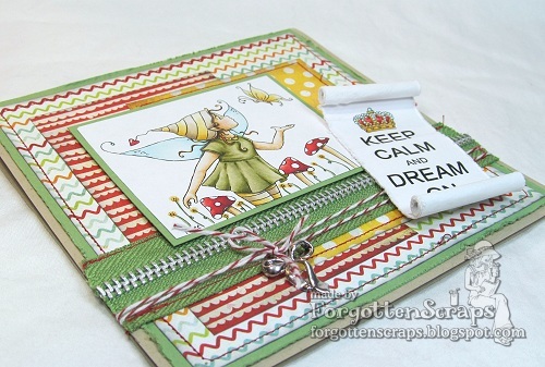 This is my project using Clover Butterfly Wishes from Little Miss Muffet Stamps and drawn by Pollycraft. I’ve also used the Royal Decree sentiment stamp, also from LMMS, and thought it worked well with the faerie theme.