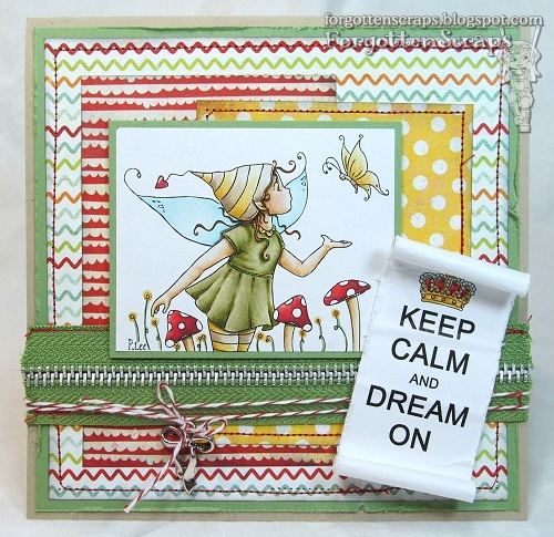 This is my project using Clover Butterfly Wishes from Little Miss Muffet Stamps and drawn by Pollycraft. I’ve also used the Royal Decree sentiment stamp, also from LMMS, and thought it worked well with the faerie theme.